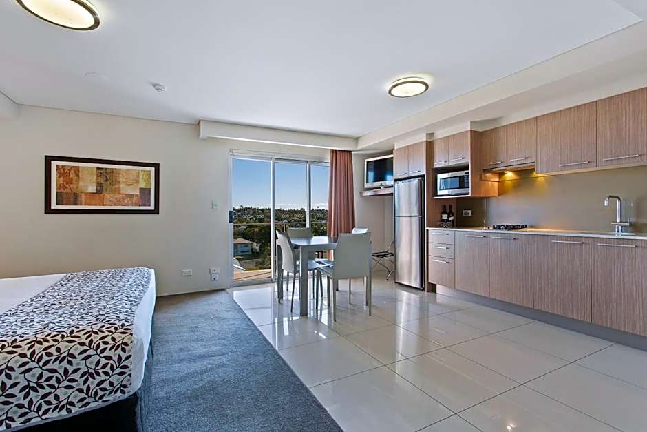 This was our second stay at this apartment, so our expectations were not really exceeded this time, but they definitely were when we first stayed. Very well appointed with ample room for a long stay. Very clean. Very quiet. Comfortable king-sized bed. Good cooking facilities. Access to a gym and indoor pool. Private washer/dryer laundry facilities in the apartment. Secure undercover parking with remote access. Three very effective aircon units incorporated within the unit. Furnished balcony. Cafe on the ground floor of the complex. Friendly staff member on hand to attend to any needs.