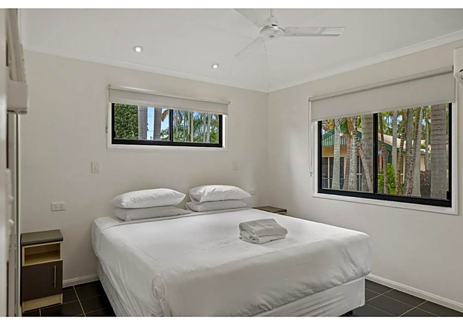Two outdoor pools offer options for all-season swimming: Pool 1 is heated with a shallow end for relaxed lounging, while Pool 2 is a kids-only option. The garden, playground, and picnic area invite slow afternoons, and a tennis court adds to the active options. With balconies and beach chairs at hand, this base makes it easy to enjoy Rockhampton’s outdoors without rushing.
