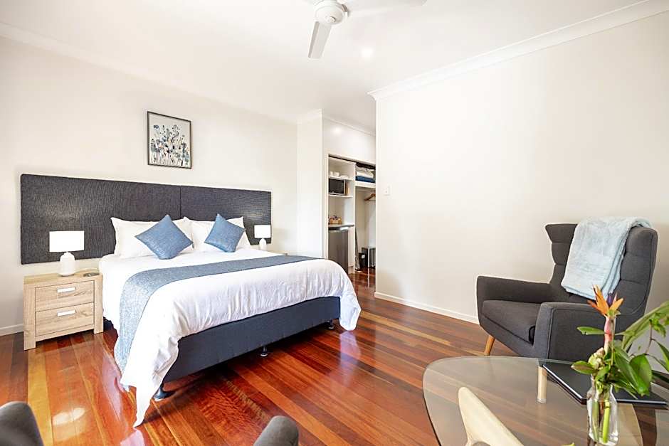 We stayed in one of the studio apartments. Extremely well kitted out with quality linen, toiletries and tea/coffee/light snack facilities. Very clean and well presented. The decking and garden areas were beautifully maintained. Very quiet, serene environment. Plenty of parking and easily accessible.