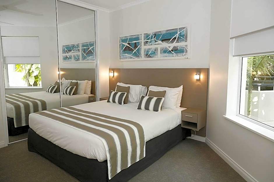 All apartments overlook the beautiful gardens from their private balcony. Features 2 bedrooms, 2 bathrooms, full kitchen and laundry facilities, air conditioning, cable TV and a DVD player.