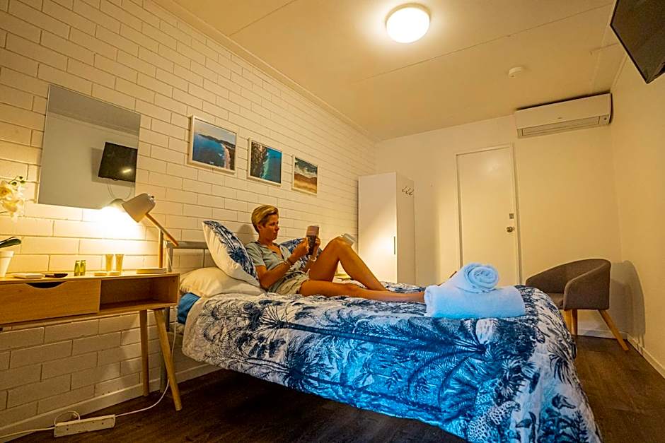 The location was great. Walking distance to the beach front and where all the shops and cafe are (20mins) Private carpark is a big win for us. Receptionists are helpful and friendly. A lot of activities were held at the property for youngsters. We were staying there as family with 2 teenagers. There was never once we felt uncomfortable or unsafe. It was well managed with lots of care and instructions around. The family room for 4 people was huge with loads of room for everyone. Basic facilities, private shower, toilet, mini fridge and Air conditioning unit. Rooms that we stayed are newly renovated and clean. Beds are comfortable with good quality pillows.