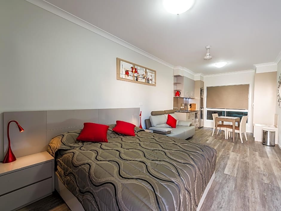 We loved these apartments. Supplied with everything we needed for self catering. Bed and pillows super comfy. Designated carspace with a carport right outside the apartment, so easy for unloading/loading the car in the rain. The weather was cold and wet during our stay, the heater worked a treat. The apartments had a communal coin operated laundry which was gratefully utilised. Coins are available at reception if you run short. We'd stay here again should we pass through Toowoomba in the future.