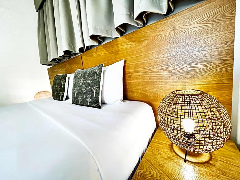 No ocean view - No living area/kitchen - No desk