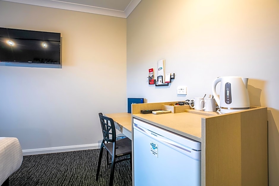 As Americans, we were unfamiliar with the concept of a hotel/bar/gaming facility, but learned it’s a typical Australian thing. The staff all treated us so nicely with lots of “extras” to enhance our stay. Tickets for free drinks at the bar meant we experienced the lively and friendly neighborhood bar crowd while watching Australian Footy on TV. Fun! Free boxed breakfasts were offered too. Our room was clean, and the bed and pillows were comfortable. The hot water pot and fridge with milk and tea bags, plus little bags of sweets were nice. There was a coin-operated washer and dryer which we were grateful to use, and they provided the washing powder. When we checked out, the sweet gals sent us off with a delicious hot chai tea latte “to-go”. We can’t say enough nice things about the friendly hospitality!!