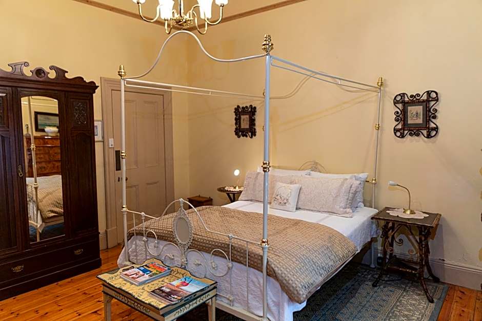 The Cafe Suite is a lovely, restored 1846 cottage offering a galley kitchenette, retro armchairs in the living area and a cricket bat signed by Indian Kashmiri Willlow encased in a display cabinet. It is furnished with beautiful Australian antiques, a gas log fireplace, underfloor heating and air-conditioning. Restricted free parking is available in the day.