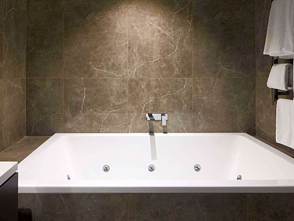 Newly renovated Studio Spa Suites have a separate lounge area, 55 inch flat screen TV and kitchenette. A private bedroom features TV, private bathroom, walk-in shower and spa bath. Bedding configuration is 1 king size bed.