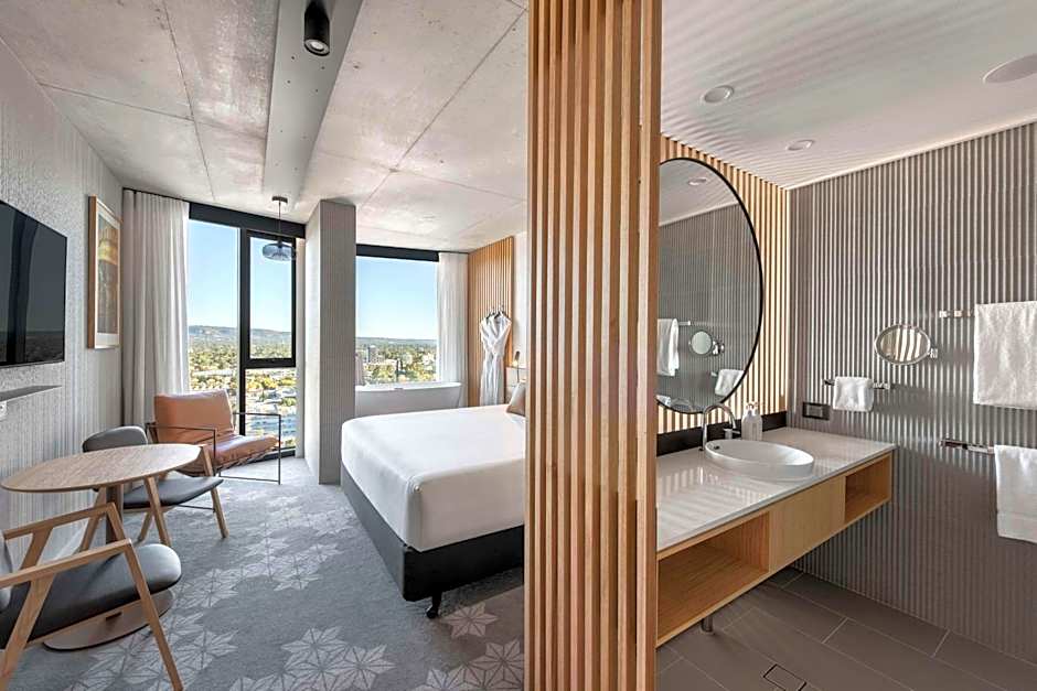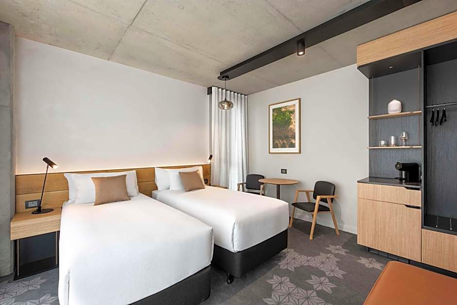 A spacious and contemporary 27sqm room that features natural finishes and textures throughout. This room features all the modern essentials to ensure a well-equipped stay to discover Adelaide. It also features two king-single beds.