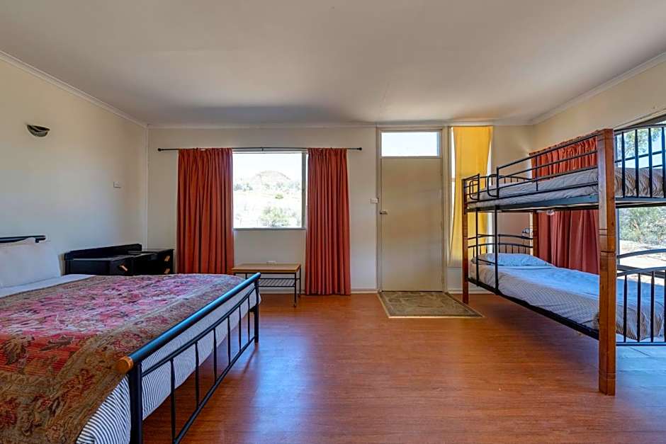 These rooms include a bathroom, evaporative air-conditioning and heating. Guests have access to a communal kitchen with fridge, oven, stove top, utensils and microwave. All rooms back onto a large lounge and dining area. Cutlery, crockery and drinkware are not provided.