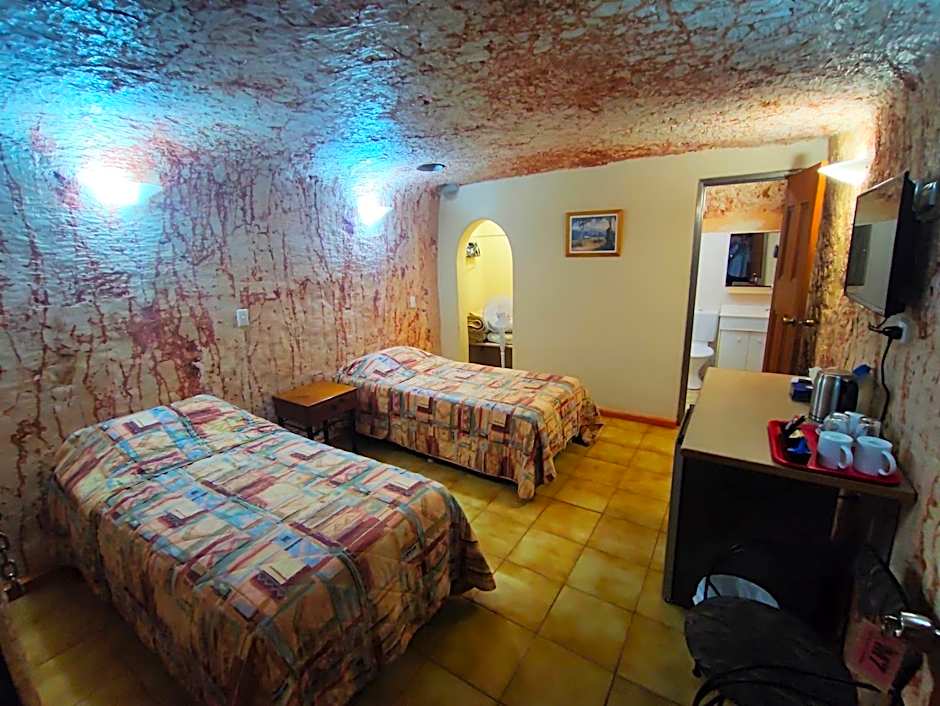 Experience living more than 9.8 feet underground. The natural sandstone rock keeps the room at a comfortable temperature. Includes a private private bathroom, bed linen, TV, tea/coffee making facilities, mini refrigerator and secure off-street parking.
