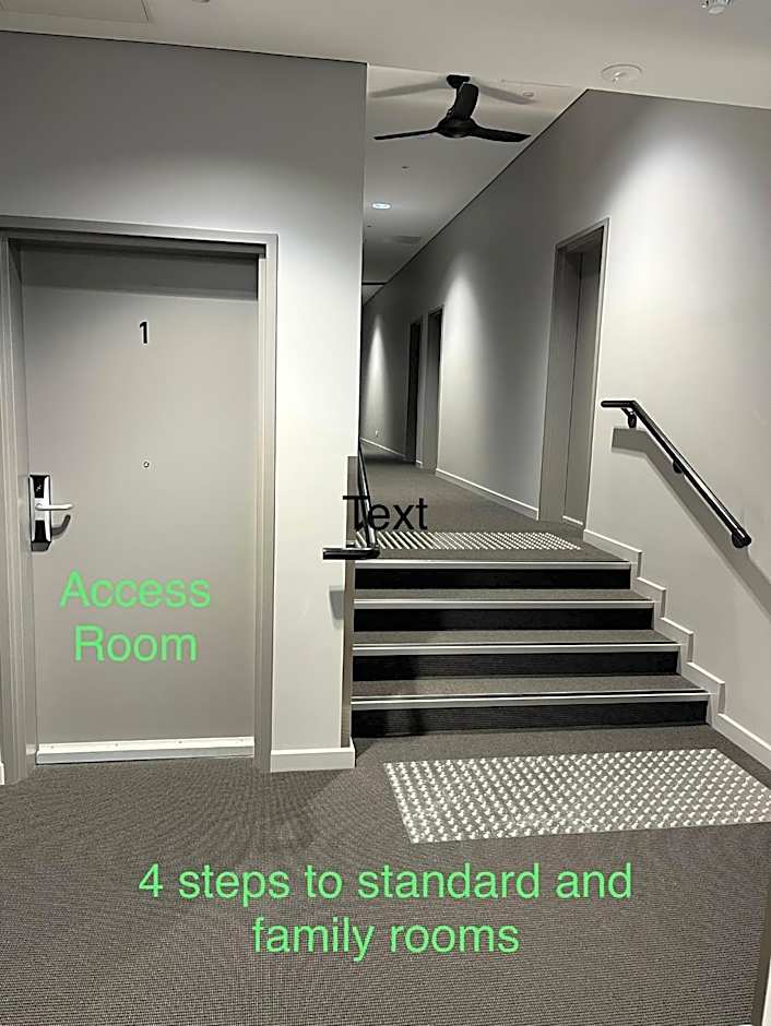 Accommodations come in three main layouts, all non-smoking: Standard Family at 248 square feet sleeps up to 3 adults with 1 twin bed and 1 queen bed; Deluxe Family at 301 square feet sleeps up to 4 adults with 1 sofa bed and 1 queen bed; and King Room at 215 square feet sleeps up to 2 adults with 1 king bed and 2 twin beds.