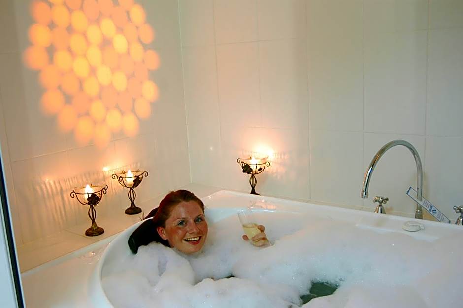 This studio features a king-size bed and a large spa bath with mood lighting.