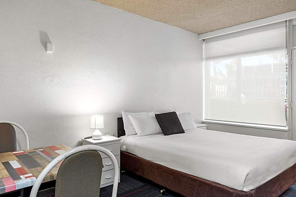 I was surprised that it was possible to get a hotel room anywhere in Australia for less than $100. The beds were relatively new as was the fridge, toaster, kettle, aircon, tv and blinds. Some cutlery and crockery was provided which was handy. Original bathroom but a good layout with ample counter space and good hot water. The room and bedding was clean. Only issue was probably the lack of a fan/ventilation in the bathroom, which meant some mould on the walls. Some of the furniture was old and worn, but still practical.