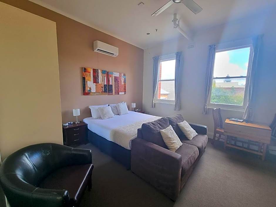 Experience elevated comfort in this beautifully renovated room featuring a plush queen-sized luxury bed, a large LCD TV, and a private ensuite. Enjoy the convenience of your own kitchenette, complete with essential facilities, and a built-in robe with ironing amenities. Climate-controlled for year-round comfort, this suite is centrally located in the heart of the city—just a short stroll from the picturesque Murray River.