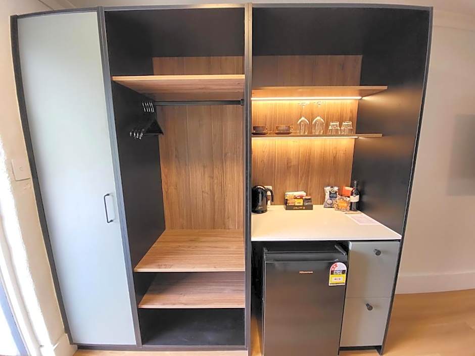There was no microwave in the room. We had some leftovers on a Sunday night and we had to eat them cold! The wash basin in the bathroom doubled as a kitchen sink. I am surprised that it is allowed to happen as I have worked in Public Health. It is definitely not safe to be washing dishes in the same sink where you wash your hands after being to the toilet! Fortunately, I had some Glen 20 to disinfect the sink before washing dishes. Also, no detergent was provided to wash the dishes. Again, fortunately, I happened to have some on hand.