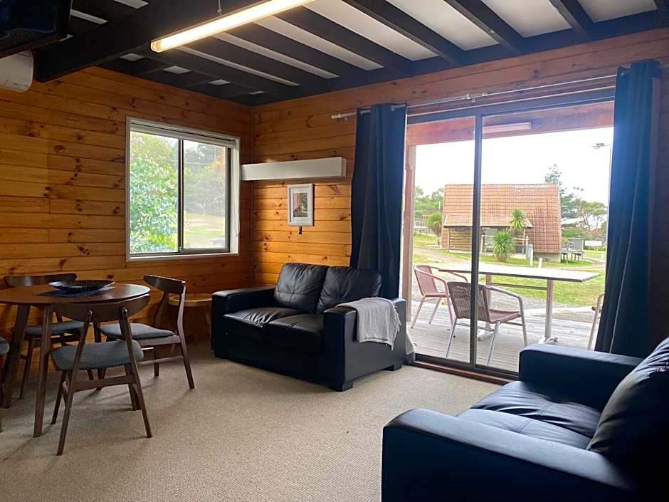 Located with easy access to Freycinet National Park & Bicheno Blowhole, Bicheno by the Bay is a great base. The complex has a number of room choices, we chose a standard motel style room which suited us, our friends chose a two bedroom self contained cabin which was stand-alone surrounded by bush - lovely. The resort is child friendly so maybe don't choose one of the motel rooms by the lake if you want peace & quiet as children can paddle canoes or swim in summer. We were in a lovely room by the lake but it was cold so the children were gone by 3pm. There is no restaurant onsite so staff made suggestions, supplied us with a map of the town and suggested the Lobster Shack which was casual but fun and tasty. Lovely place to stay.