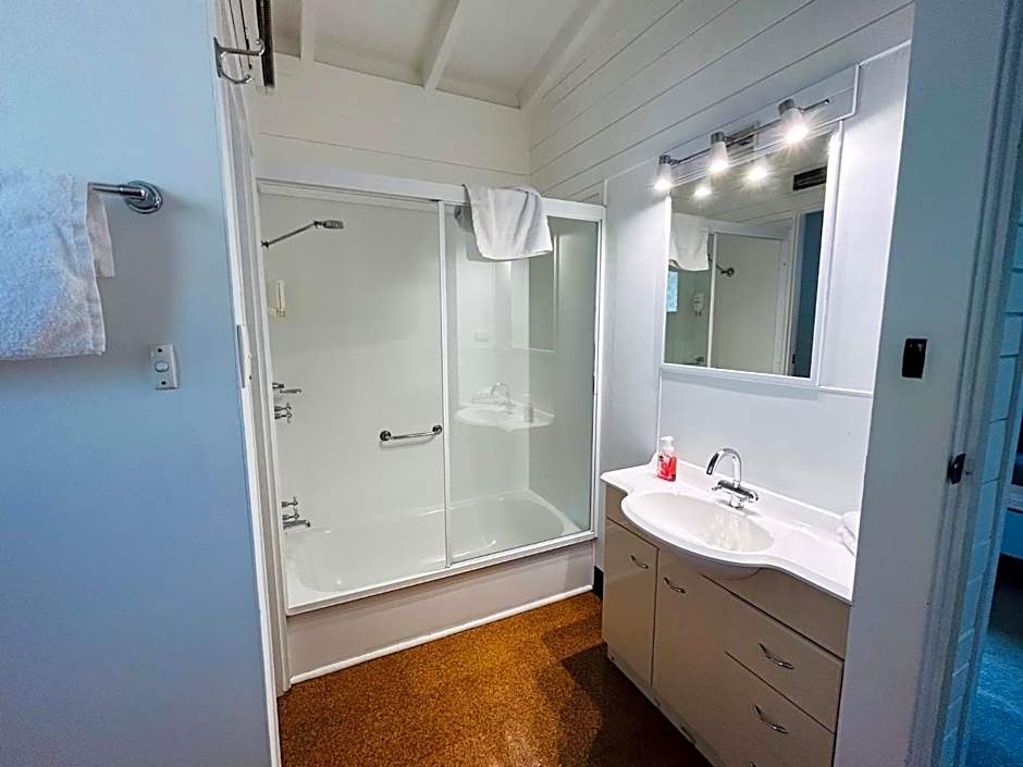 This motel room includes views over man-made pond, a queen-sized bed, heating, flat-screen TV, walk-in shower, tea/coffee making facilities and a toaster, a microwave can be found in the adjacent Guest Laundry for guest use. Please note that one of the motel rooms is accessible for guests with reduced mobility.