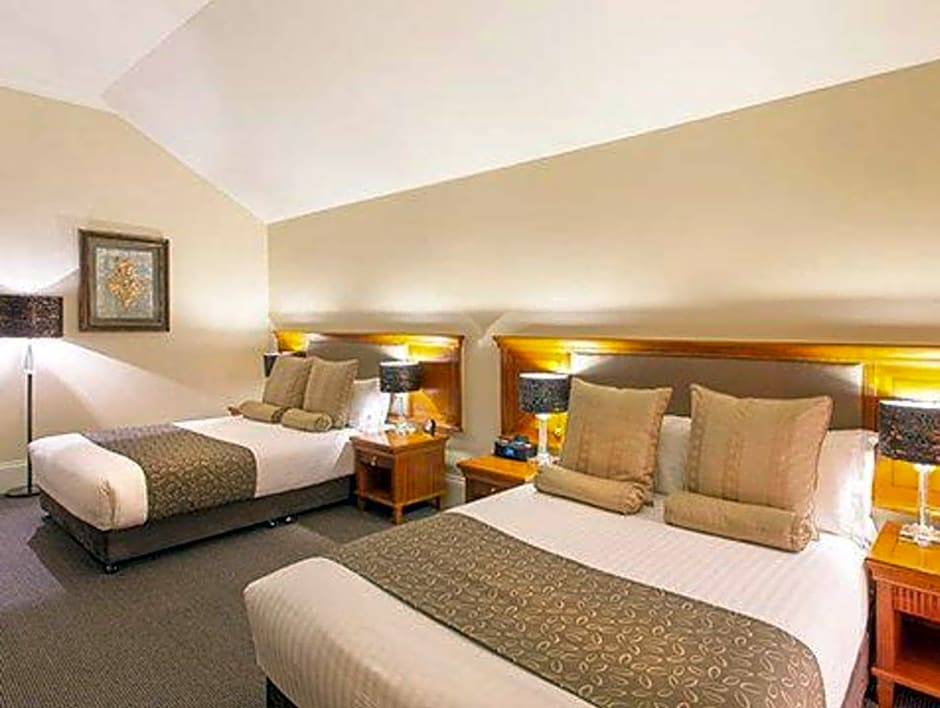 The Grand Hotel Launceston offers a variety of rooms including Deluxe Twin Rooms, Family Rooms, Deluxe Queen Rooms, and Deluxe Suites with Spa Baths. Smoking is not allowed in any of the rooms. The Deluxe Twin and Family Rooms can accommodate larger groups, with the Family Room accommodating up to 5 adults and 1 child. The Deluxe Queen Room and Deluxe Suite can each accommodate 2 adults and 1 child. The rooms offer different bed sizes, including Twin, King, Queen, and multiple Queen beds in the Family Room.
