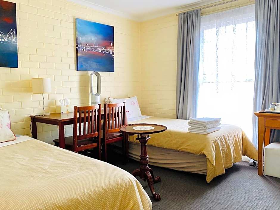 The Mews Motel offers a variety of room types including Family rooms, Deluxe Queen rooms, and Twin rooms. The Family room has a larger size of 323 sqft and can accommodate 3 adults with a Twin bed and a King size bed. The Deluxe Queen rooms are slightly smaller with sizes ranging from 194 to 226 sqft and are suitable for 2 adults with a Queen size bed. The Twin rooms have a size of 161 sqft and can accommodate 2 adults with 2 Twin beds. All rooms are non-smoking.