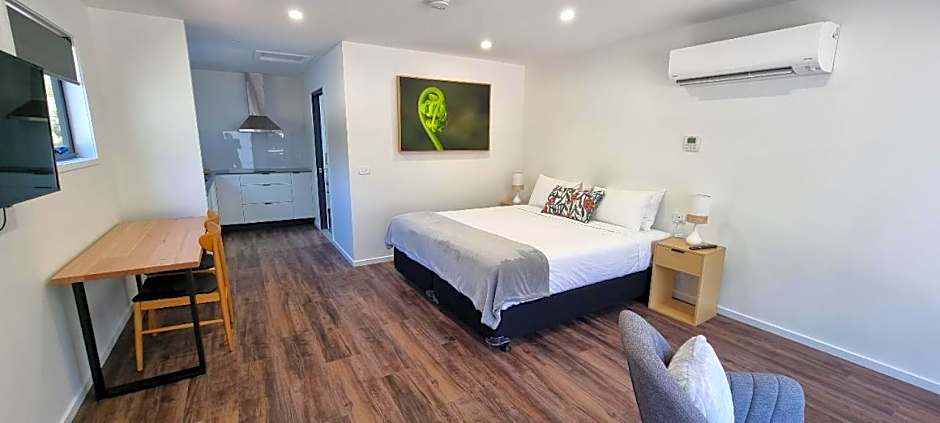 Well located, close to the main road but without traffic noise. Landscaping around the rooms is beautifully done, as are walkways and decking. Rooms are modern, well equipped, and very clean.