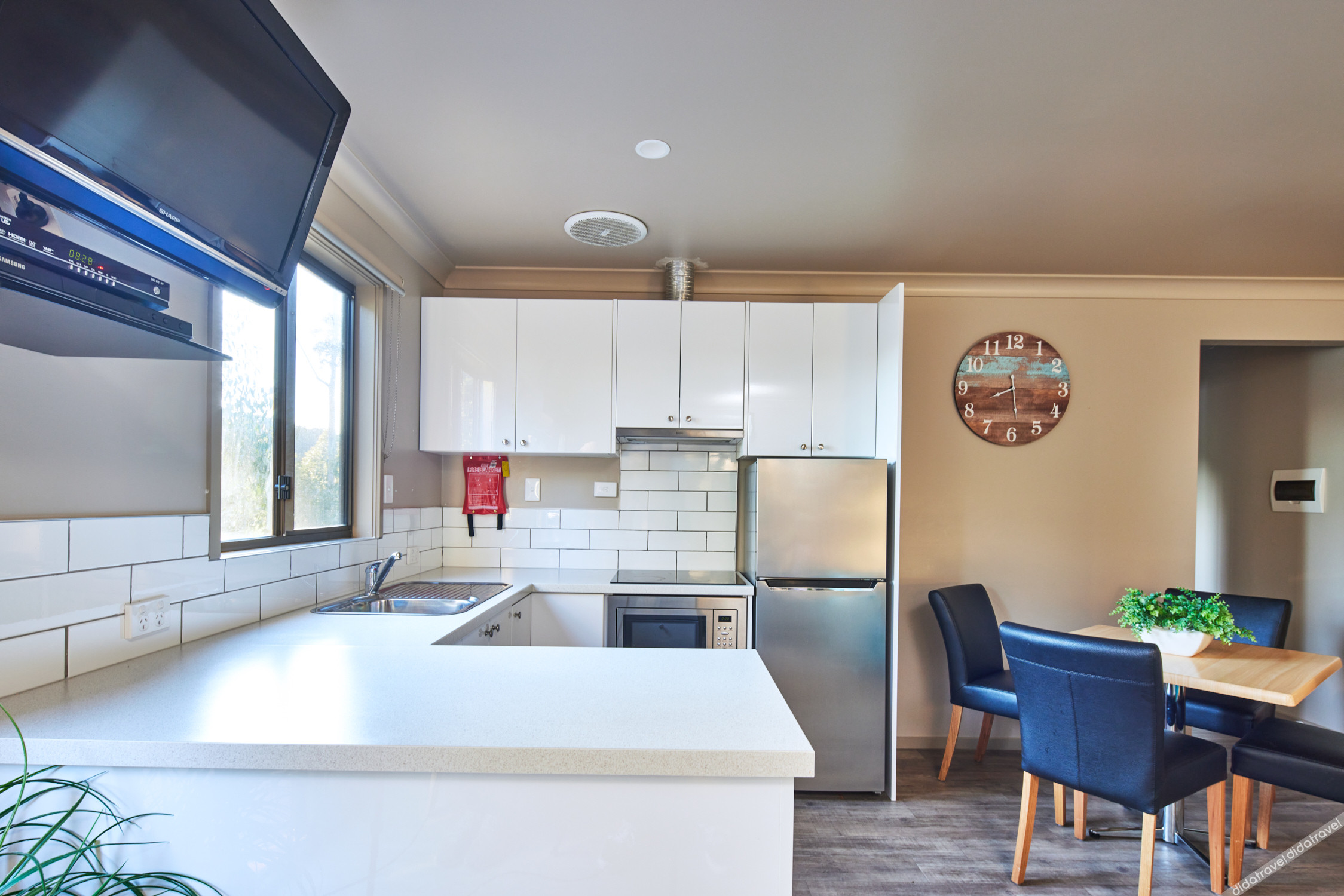 Beautiful walk to the beach. Was very impressed with how big the park is and how much privacy camp-site has to offer everyone. The cabin we stayed in was very warm without the heater on...amazing! Very clean room 👌 I love the pizza oven at Camp Kitchen. Camp kitchen and family lounge room is nice and big for all to enjoy tv or games. It's a nice relaxing park with nature. You can even buy bird and roo feed for the cute roos and pretty birdies. Overall, the park managers were very welcoming and pleasant. We had a great time in our stay and wished we had longer.