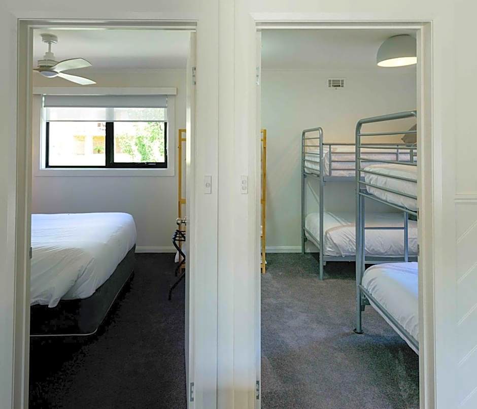 With a BBQ, this four-bedroom house features a large living room, dining area and a kitchen. Also comes with 2 bathrooms with a shower, air conditioning and a private deck.