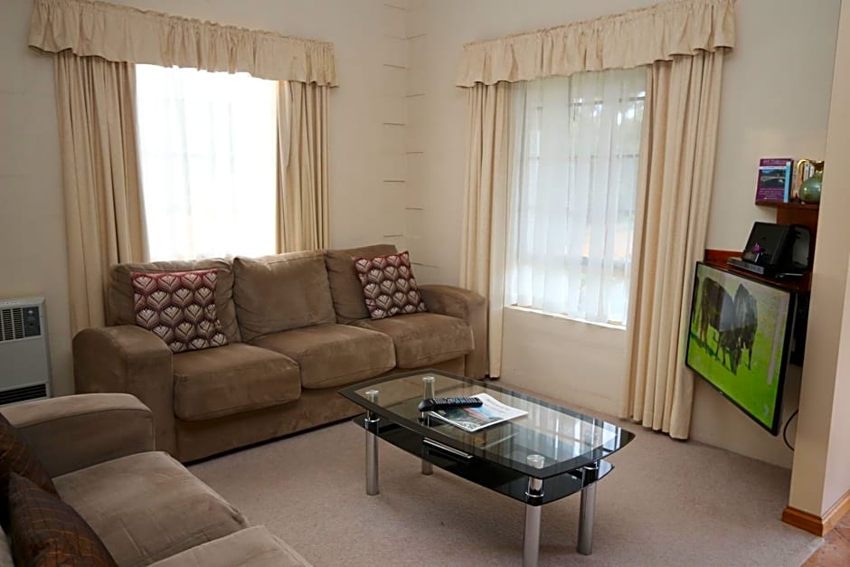 This air conditioned family motel suite features complimentary WiFi, a queen-size bed, a single bed, settee, dining setting and private bathroom with a bath/shower. It has a wall-mounted LCD TV, DVD player, toaster, kettle, microwave, crockery and cutlery. Please note the rate is for up to 2 guests with a maximum occupancy of 3. Please note:- - It is a non-smoking, non vaping room. - family lodge suite not motel suite