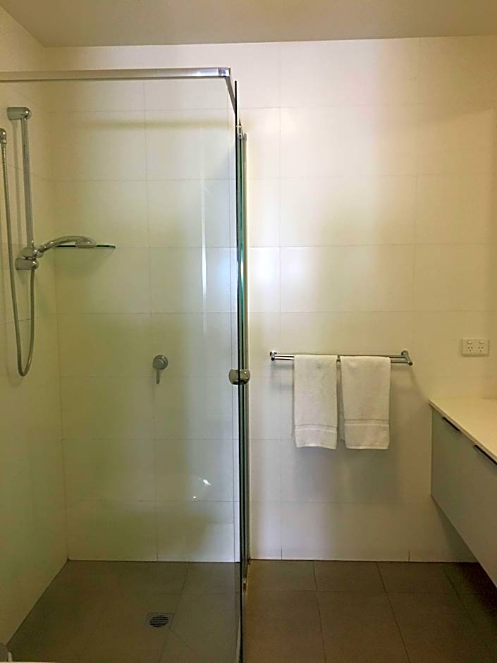 The Tudor apartments that I stayed in are huge. There is plenty of room, and the outside patio area is also massive and private, so you can walk around, let it all hang out, and watch the world go by below. There is a large lounge suite and reasonable TV with basic free air and Foxtel channels. The apartment also comes with a desk and kitchen table, and an equipped kitchen with a big fridge freezer. The main bed was very comfortable. Good security, and the door access monitor works, so getting food delivered was easy if you don't want to use their restaurant, which had lovely meals.