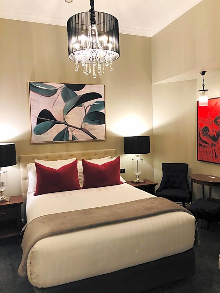 The Queen Rooms are fitted in a contemporary style. The bedroom is fully carpeted with an individual reverse cycle air-conditioning system and is equipped with a Smart TV with Netflix, a wardrobe and pantry with sink, an espresso coffee machine and bar fridge. The en suite has a walk-in shower finished in Italian marble, wooden flooring and elegant bathroom accessories, as well as fluffy bath towels, hairdryer and a selection of luxury toiletries. Still mineral water is provided in the room and replenished daily.