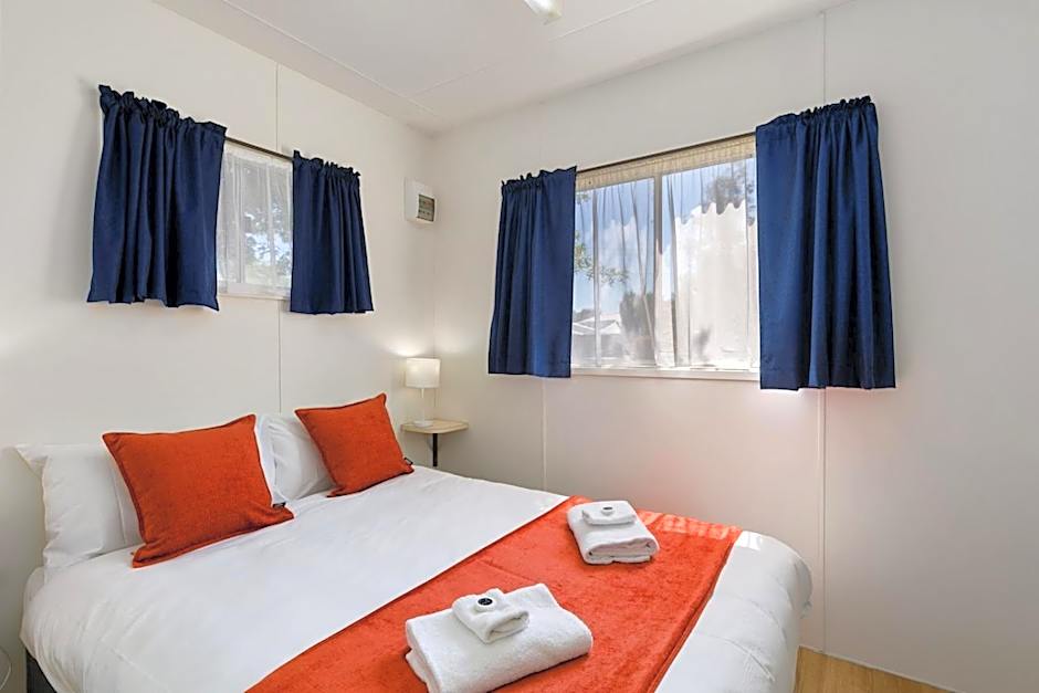 Nice little holiday park. We stayed in a small cabin with our 2.5 yo. It was spacious for a studio and very clean. Bed was comfy, clean linen. Small kitchenette with all that you need - fridge, stovetop, pots, dinnerware, toaster, electric kettle. Heater is good (weather was cool at night, so this was great). Shower was good. Toilet has heat lights which are great for the cold weather. Location was good if you need to be close to town - walking distance to the pubs! There is a playground for the kids and a nice clean pool for the warmer months (we didn't use it but it looked nice) We had a good stay overall.