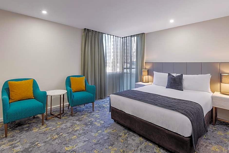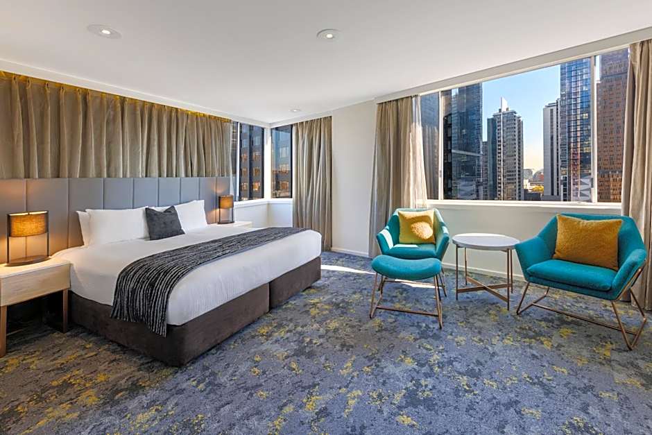 This room offers views over Lonsdale Street and includes a 40-inch LCD TV. The private bathroom features a rain shower.