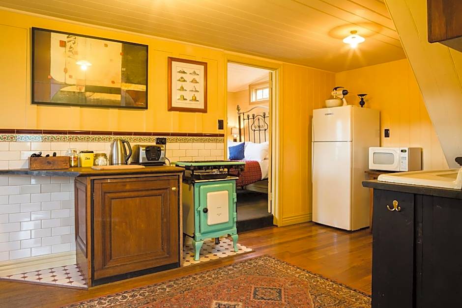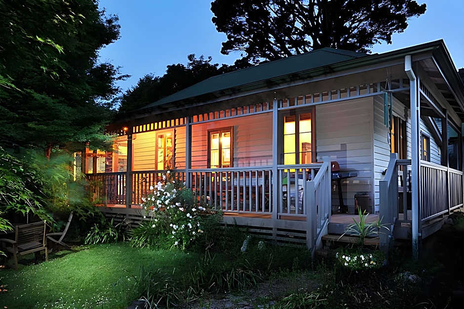 This cottage is spacious and feels like you're in the tree tops. It is open plan with kitchen, bedroom and bathroom with big claw-foot bath tub and a separate glass conservatory lounge. Located just 1640 ft from the shops and easy to find on the Mt Dandenong Tourist Rd.