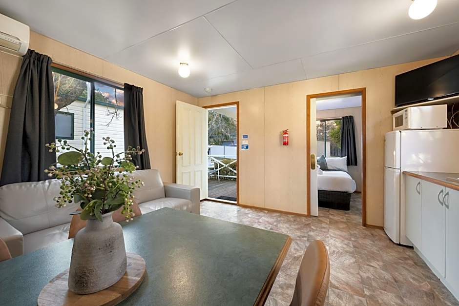 Clean, nicely decorated and well made cabins. Staff turned on our heater before we arrived to make sure the cabin was warm. Plenty of blankets available. Games room had lots of great activities. Close enough to the snow for day trips up to Dingo Dell at Mt Buffalo. We would love to come back in summer to try the hire bikes and a swim in the river.