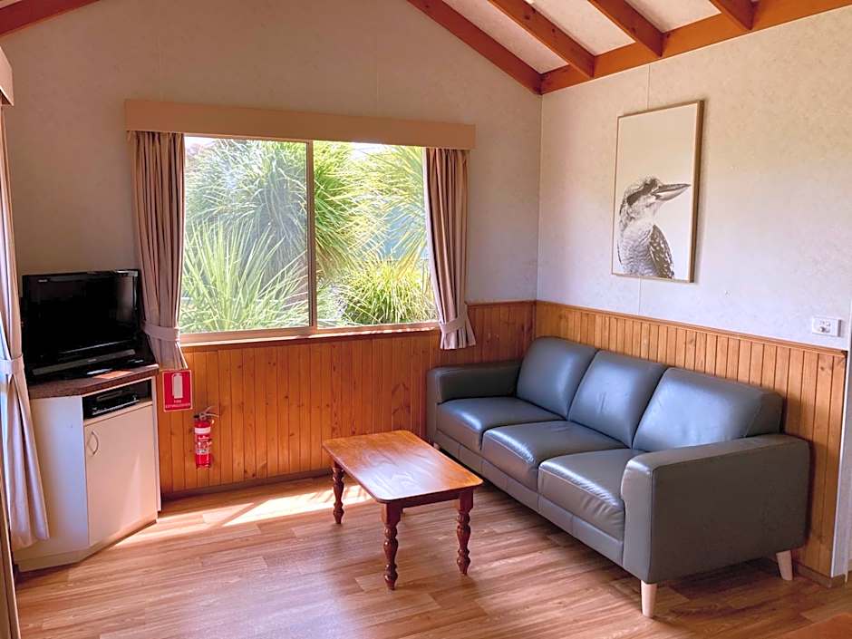 Self-contained and perfect for those looking for a comfortable and affordable accommodations option when discovering all that this region has to offer. Featuring two bedrooms with an open-plan kitchen, living and dining area plus balcony with views of the grounds. It also includes air-conditioning and heating in the living area and a bathroom with shower.