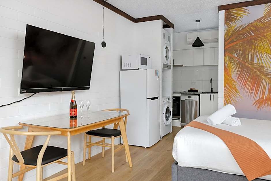Inside, rooms feature air conditioning, free Wi-Fi, and handy options like a kitchenette, balcony, or terrace, with streaming services for after-hours relaxation. Kitchenware supports simple meals, extra-long beds (>6.5 ft), and non-smoking rooms for comfort; room service, a bar, and a tour desk are available, along with meeting/banquet facilities (extra charges). Pets are allowed on request with possible charges, and free on-site parking is available, with cash, Mastercard, American Express, Visa, and Eftpos accepted.