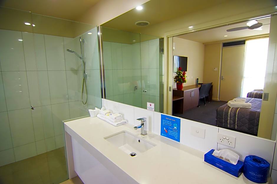 The location is exceptional, the rooms are amazing, it feels like you’re in a top quality hotel. The bathrooms are very fancy and nicely done. The air conditioning is great. The beds were very comfy. I liked that there’s a fridge, spot for a suitcase, bench space, plenty of room for a motel room.