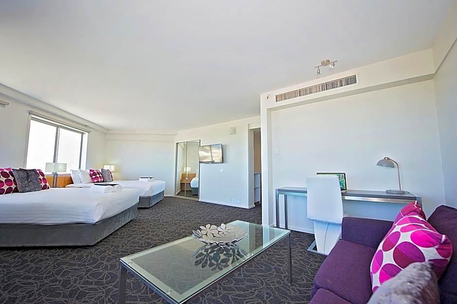 This spacious apartment features a lounge area, a 2-person spa bath and a private balcony overlooking the city. It also includes a mini kitchenette with a microwave, mini-bar and tea/coffee making facilities. The flat-screen TV provides cable channels. All apartments are located on the top floor of the hotel.