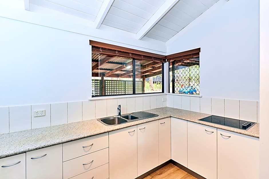 Set among the towering karri trees, our 3 Bedroom Chalet offers stunning forest views in a peaceful setting. This forest edge chalet is ideal for family or friends, containing two queen beds, one single bed and a set of bunk beds for a maximum of seven guests. Accommodations facilities include free Wi-Fi, a log fire with pre-chopped wood (winter only), air conditioning, kitchen with fridge, stovetop, and microwave, one bathroom and a lounge and dining area with a TV. You will also have a balcony, where you can dine outside surrounded by nature.