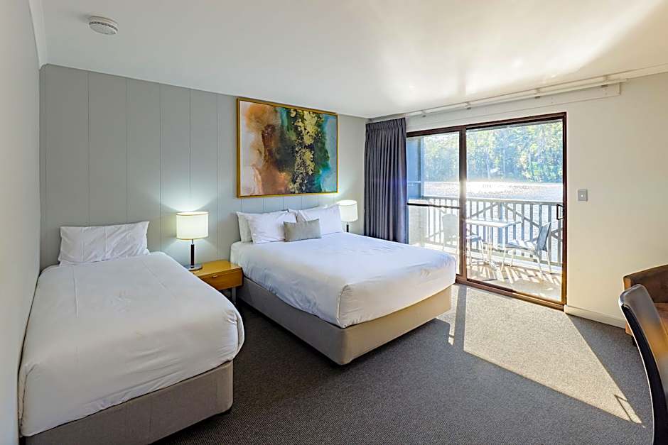 Our Lakeside Rooms are located on the ground floor and offers family-friendly accommodations and unobstructed lake and forest views to enjoy. The room contains one queen and one single bed to sleep a maximum of three guests, making it ideal for a couple or small family. Lakeside accommodations facilities include electric heating and cooling, free Wi-Fi, tea and coffee making facilities with a small fridge, a bathroom, and TV. This room type is not self-catering for making meals. Soak in the views from your balcony, complete with outdoor setting for enjoying a meal from The Lakeside Restaurant. There are also a large range of resort activities ready for you to discover, just moments from your room.