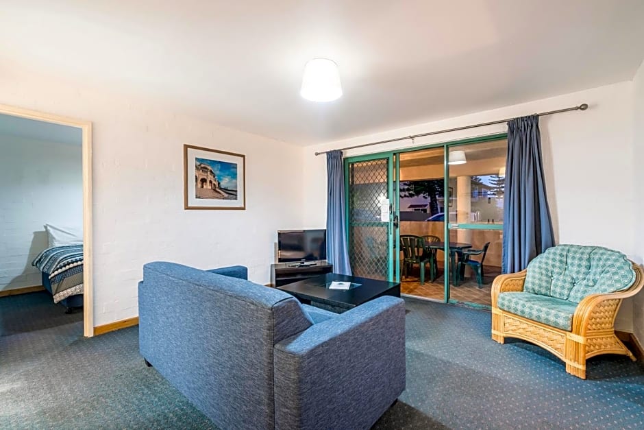 The Standard 2-bedroom Chalet features a spacious lounge/dining room, a fully equipped kitchen, entertaining area and bathroom. The bedrooms are located on the second level, which is accessible via a spiral staircase. The main bedroom has a queen size bed with built in robes, the second bedroom (open loft style) is furnished with built in robes and two single beds and a rollaway bed and overlooks the downstairs living area. This Chalet also has air-conditioning, a TV, telephone and free WiFi. One free parking bay per chalet booked. You can request your preferred bedding configuration in the Special Requests Box at the time of booking. Please note that the bedrooms are located on the loft level, which is accessed by using a spiral staircase. One bedroom is enclosed and the other bed is in an open area that overlooks the downstairs living area. Please note that the price is based on 4 guests. Maximum occupancy is 5 (see Hotel Policies).