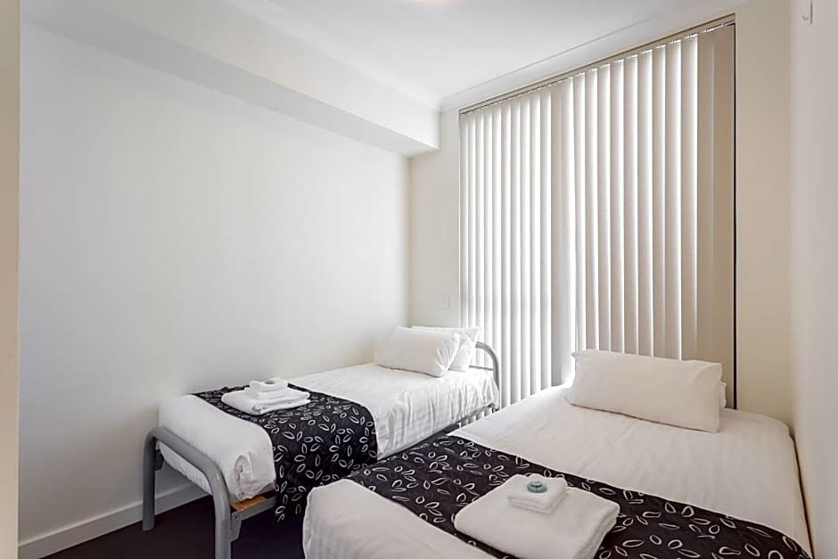 7th floor, room 52, amazing view high above the trees. Great layout, master bedroom with walk-in wardrobe and ensuite. Plenty of storage for luggage and a safe for valuables. Has everything you need. The washing machine and dryer was well used. Great location with a mini supermarket and bottlestore nearby 2min walk. Great cafes, restaurants/bars and shopping. Could hire paddleboards, scooters and the bus stop was just around the corner. Very clean, tidy and felt safe.