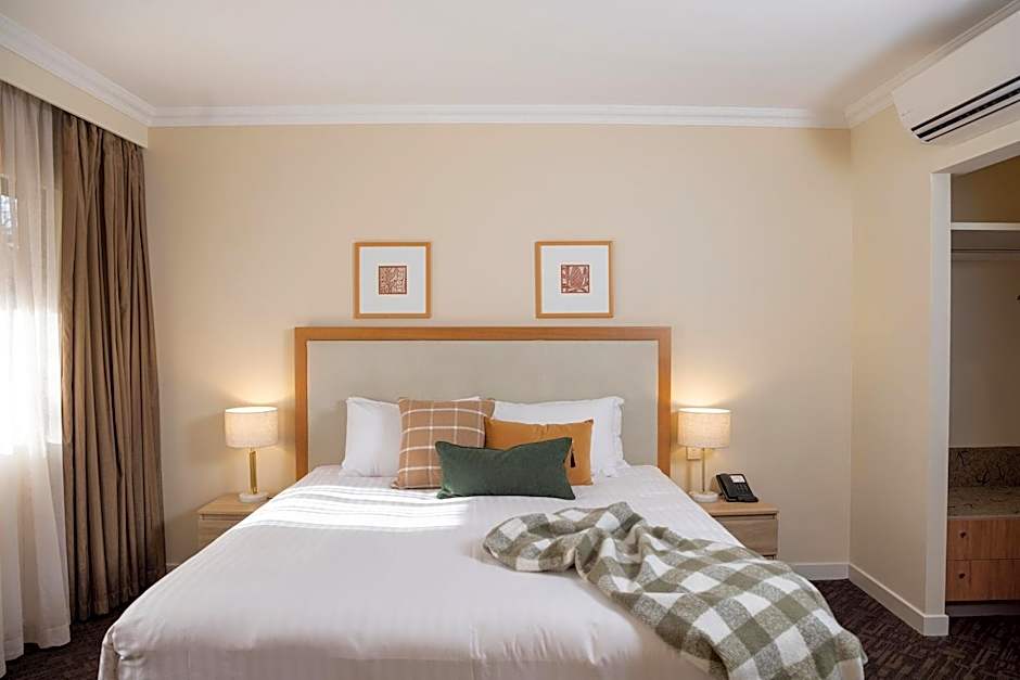 Featuring a King sized bed and separate living room, these apartments feature a flat screen TV in both the bedroom and living room. Also included is a kitchenette with a stove top and microwave, spa bath and separate shower, washing machine and dryer, plus free WiFi. The apartment also features a writing desk, safe, dining table, ironing facilities and mini-bar refrigerator.