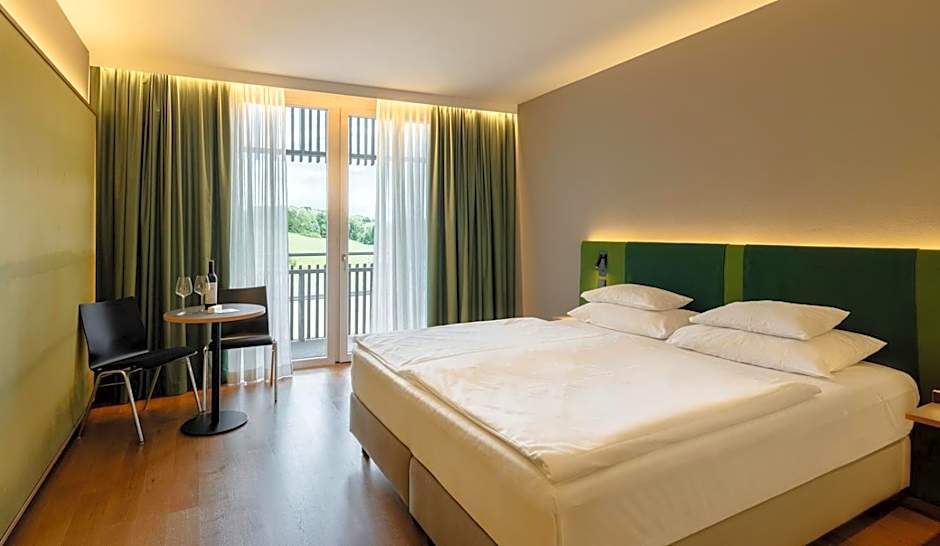 Stylish rooms offering panoramic views of the forest or of the wine store. The bathroom comes with a rain shower or a bath tub and there is a separate toilet.
