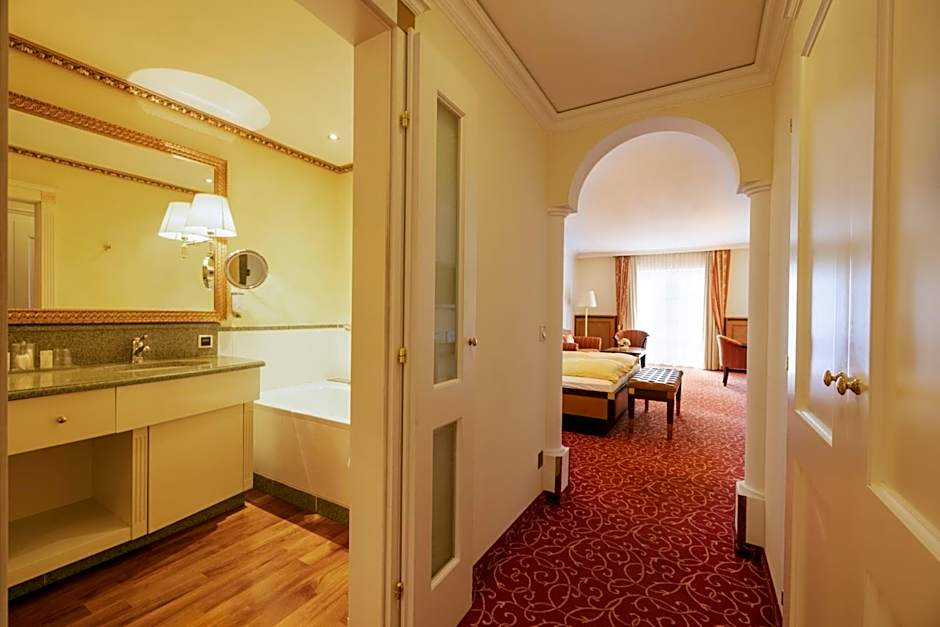 This suite comes with flat-screen cable TV, a mini-bar and a private bathroom with bath or shower, bathrobes and a hairdryer.