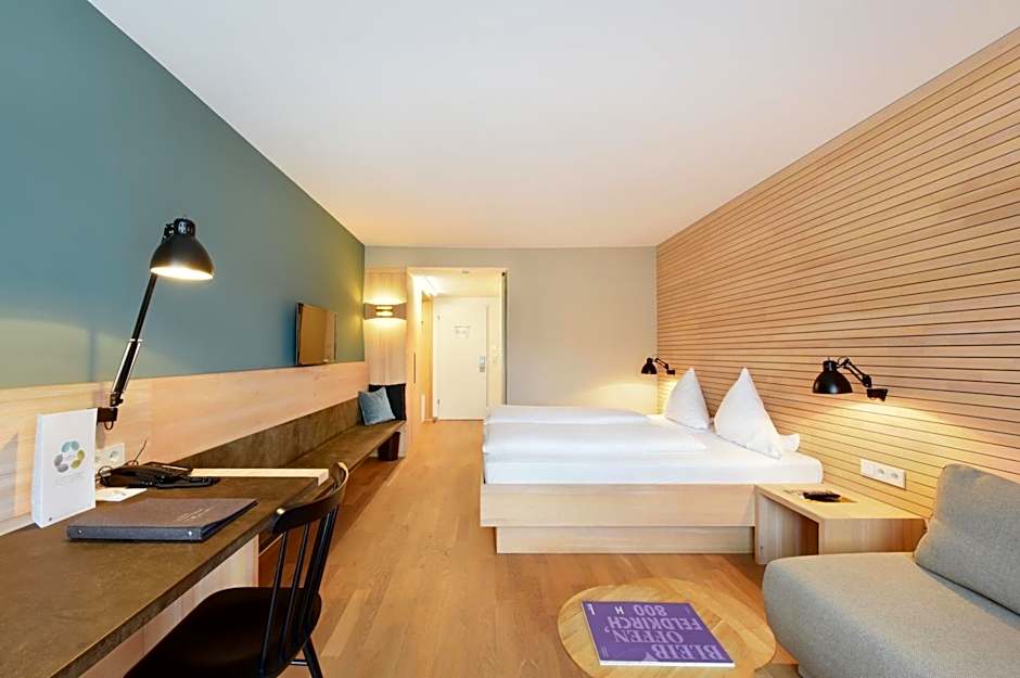 Spacious and bright rooms with a small balcony offering panoramic views over Feldkirch. Furniture is made by local craftsmen with local materials. A flat-screen TV is provided. Private bathrooms are fitted with large showers. Extra beds are not available in this room type.