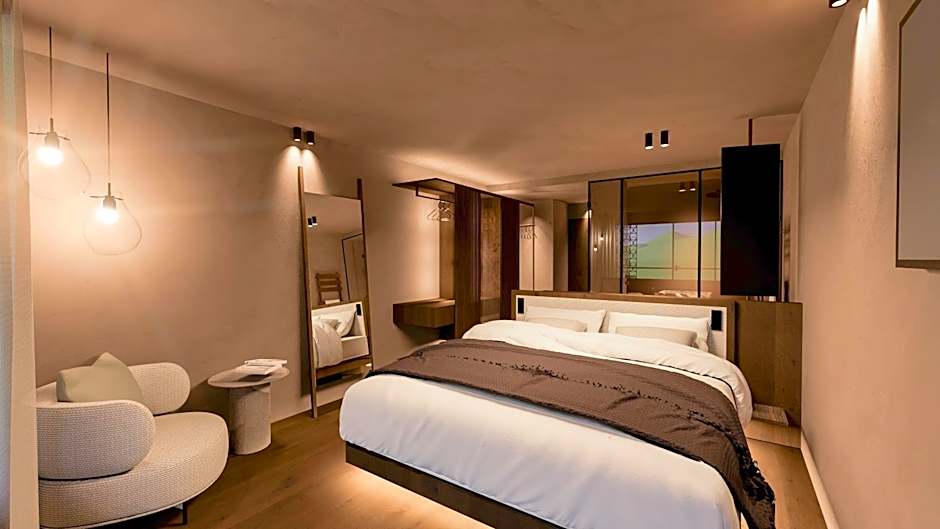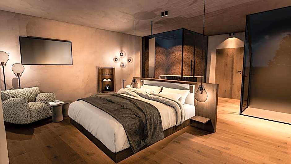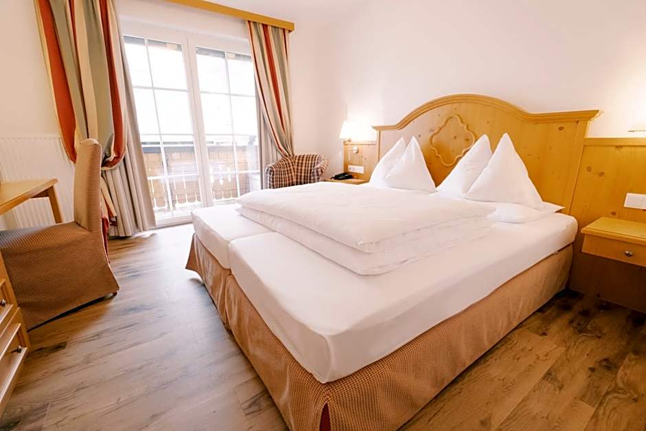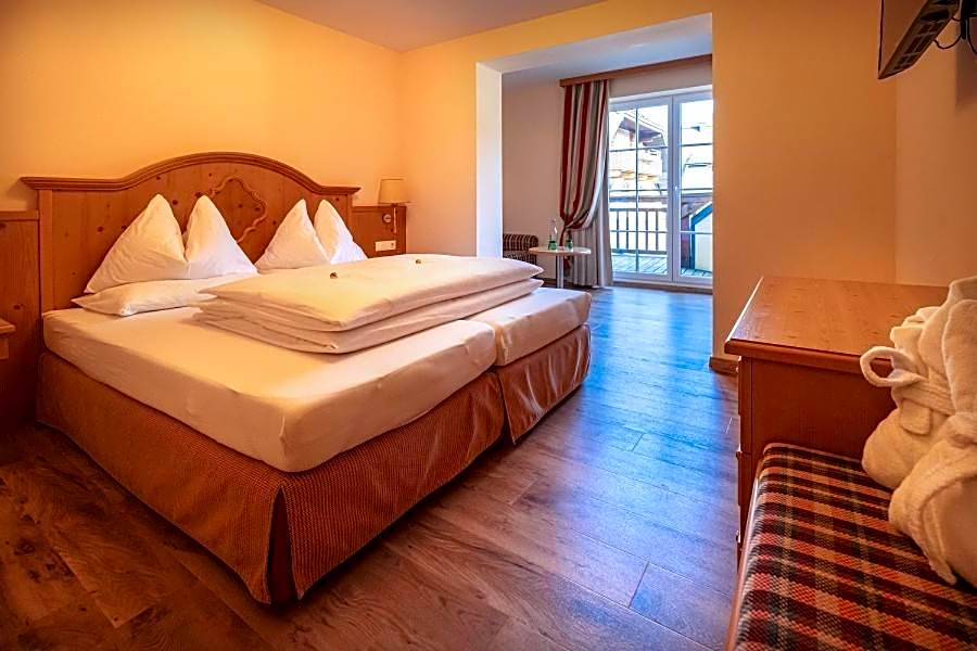 The village facing rooms are decorated in bright spruce wood. All rooms have a balcony.