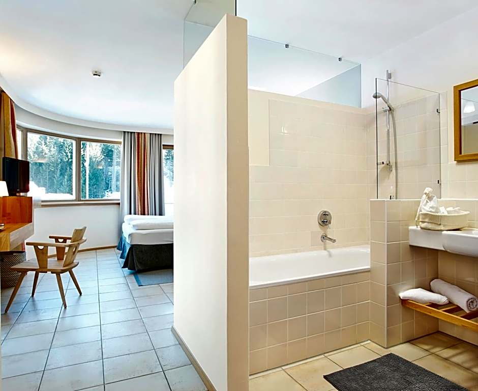 We booked this last minute. We got a modern and clean room, staff offers great service and the hotel is situated next to the lift. Great facilities (pool / sauna / steambath). Breakfast and dinner were both delicous! Definitely recommend and would visit again.