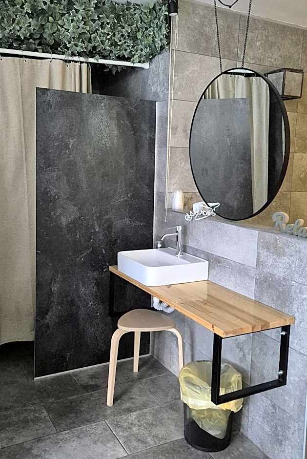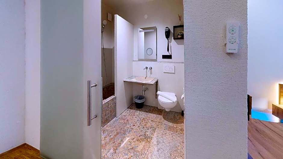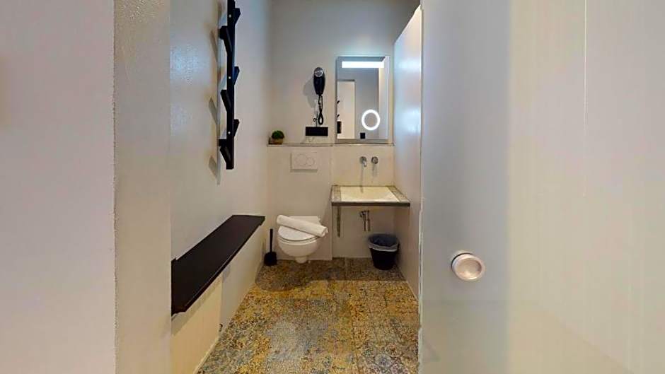 Late Check-In was no problem, really big room with a balcony, perfect for us two and our dogs! The bathroom was a bit poorly designed (water from bathroom sink and shower splashes..) but looked really nice. Small fridge in the room and a lot of storage area. There's free parking in the back of the building.