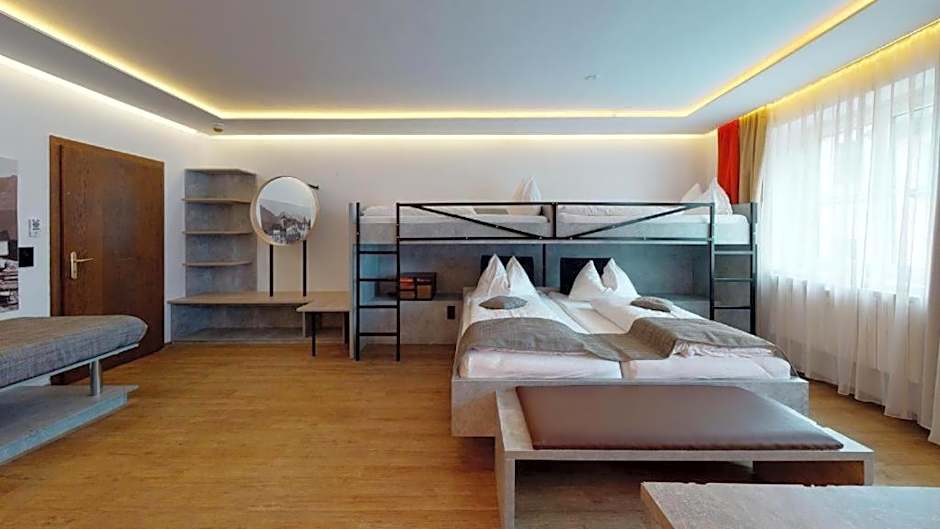 At Hotel Adler, there are Comfort Quadruple Rooms with two twin beds and one king-size bed, accommodating four adults. Comfort Double Rooms have one queen-size bed for two adults. Comfort Triple Rooms have a queen-size bed and a futon mat for three adults and one child. The Family Suite is the largest option, with a king-size bed, two bunk beds, and a sofa bed, accommodating five adults and three children. Smoking is not allowed in any of the rooms.