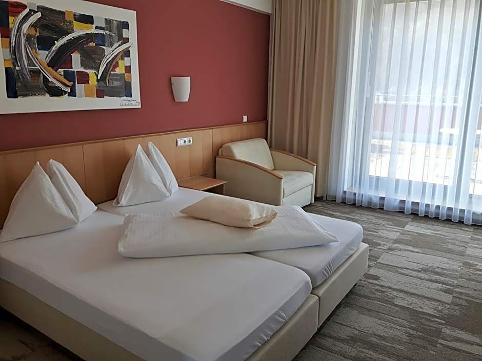 The spacious double room offers air conditioning, soundproof walls, as well as a private bathroom featuring a walk-in shower and a hairdryer. The double room features carpeted floors, a seating area with a flat-screen TV with satellite channels, a mini-bar, a safe deposit box, as well as heating. The unit offers 1 bed.