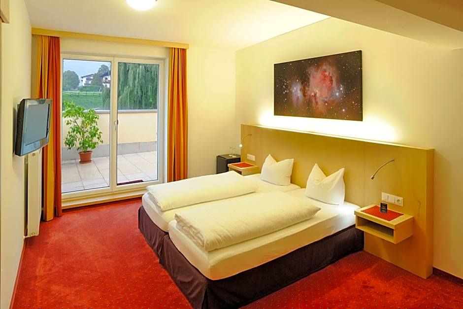Clean, well appointed and comfortable rooms. A very pleasant breakfast room. The hotel is set in an exclusive semi residential/rural area of Hall. We also loved the original artwork on the walls!